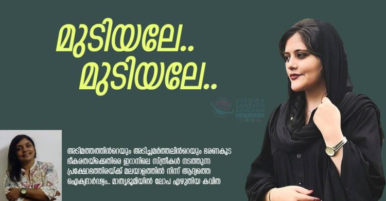 അടിമത്തത്തിന്റെയും അടിച്ചമർത്തലിന്റെയും ഭരണകൂട ഭീകരതയ്ക്കെതിരെ ഇറാനിലെ സ്ത്രീകൾ നടത്തുന്ന പ്രക്ഷോഭത്തിരയ്ക്ക് മലയാളത്തിൽ നിന്ന് ആദ്യത്തെ ഐക്യദാർഢ്യം.. മാതൃഭൂമിയിൽ ലോപ എഴുതിയ കവിത