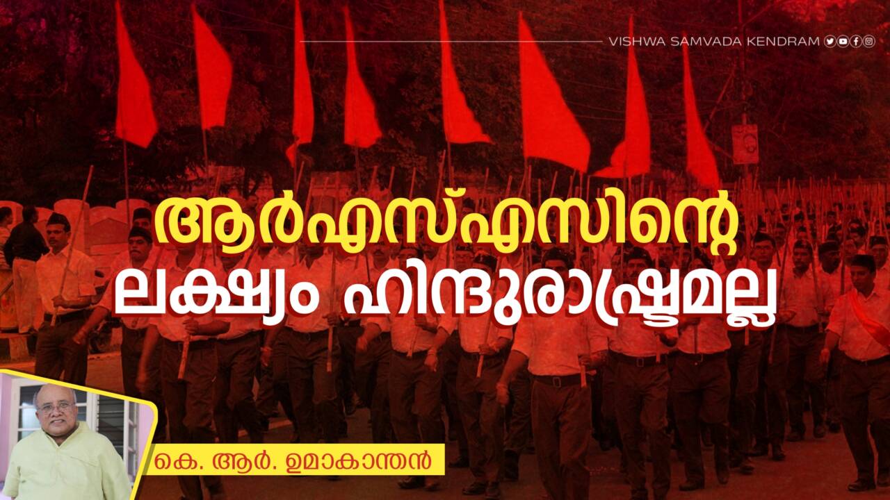 ആര്എസ്എസിനെ വിമര്ശിക്കുന്നവര് പറയുന്നത് അത് ഇന്ത്യയെ ഹിന്ദുരാഷ്ട്രമാക്കാനായി പ്രവര്ത്തിക്കുന്നു എന്നാണ്. ഹിന്ദുരാഷ്ട്രം എന്നതുകൊണ്ട് അവര് ഉദ്ദേശിക്കുന്നത് ഹിന്ദുക്കള് മാത്രമുള്ള ഒരു രാജ്യം എന്നാണ്. ഇവിടത്തെ ന്യൂനപക്ഷങ്ങളെ-പ്രധാനമായും മുസ്ലിങ്ങളെ- ഒഴിവാക്കി ഒരു രാജ്യം ഉണ്ടാക്കുക എന്നതാണ്. മുസ്ലിം രാജ്യങ്ങളിലേതുപോലെ ഇസ്ലാംമതം പിന്തുടരാത്തവരെ ഇസ്ലാമിലേക്ക് മതംമാറ്റുകയോ പീഡനങ്ങള്ക്കു വിധേയമാക്കുകയോ രാജ്യത്തുനിന്ന് ഓടിച്ചുകളയുകയോ ചെയ്യുന്നതുപോലെ ആര്എസ്എസും ഹിന്ദുക്കളല്ലാത്തവരെ ഇല്ലാതാക്കാന് ശ്രമിക്കും എന്നതാണ് അവര് ഹിന്ദുരാഷ്ട്രം എന്നതുകൊണ്ട് ഉദ്ദേശിക്കുന്നത്. ആര്എസ്എസിന്റെ ഹിന്ദുരാഷ്ട്രത്തില് മുസ്ലിങ്ങള്ക്കും ക്രിസ്ത്യാനികള്ക്കും രക്ഷയില്ലെന്ന് അവര് പറഞ്ഞു പരത്തുന്നു. എന്നാല് ഇന്ത്യയെ ഒരു ഇസ്ലാമികരാജ്യമാക്കാന് ശ്രമിക്കുന്ന പിഎഫ്ഐ, എസ്ഡിപിഐ തുടങ്ങിയ സംഘടനകളുമായി ആഭിമുഖ്യം പുലര്ത്തുകയും തെരഞ്ഞെടുപ്പുസഖ്യം ഉണ്ടാക്കുകയും ചെയ്യുന്നവരാണ് ആര്എസ്എസിന്റെ ഹിന്ദുരാഷ്ട്രത്തെ എതിര്ക്കുന്നത് എന്ന കാര്യവും നാം ഓര്ക്കണം.