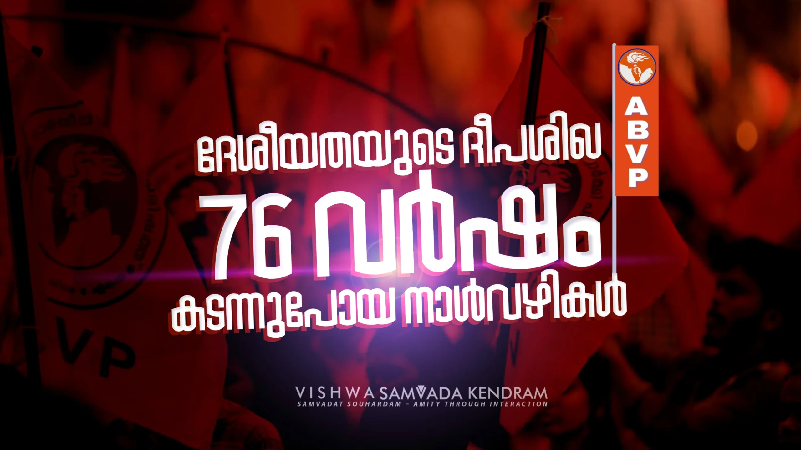 ABVP എന്ന മഹാപ്രസ്ഥാനത്തെ കാലാകാലങ്ങളിൽ മുന്നിൽ നിന്നും പിന്നിൽ നിന്നും നയിച്ച ക്രാന്തദർശികൾ, ദീർഘവീക്ഷണത്തോടു കൂടി പതിറ്റാണ്ടുകൾക്ക് മുൻപ് തുടങ്ങി വച്ച പ്രക്ഷോഭങ്ങളുടേയും ഫലപ്രാപ്തി നേരിട്ടു കാണാൻ കഴിയുന്ന ഒരു കാലഘട്ടത്തിലൂടെയാണ് നാം ഇന്ന് കടന്നു പോകുന്നത്. ഭാരതത്തിൽ അസംഭവ്യമെന്ന് പലരും വിധിയെഴുതിയിരുന്ന ആർട്ടിക്കിൾ 370 റദ്ദാക്കലായാലും പൗരത്വഭേദഗതി നിയമമായാലും ദേശീയ വിദ്യാഭ്യാസ നയമായാലുമൊക്കെ അതിനു പിന്നിൽ ABVP നടത്തിയ ഐതിഹാസികമായ സമരപോരാട്ടങ്ങളുടെ ചരിത്രമുണ്ട്.