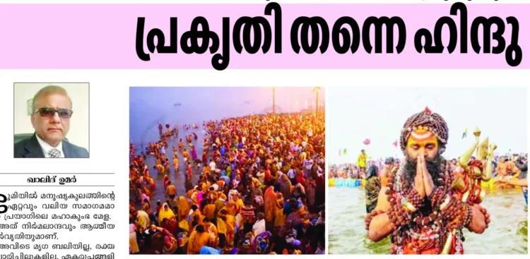 ലോകത്തൊരിടത്തും ഇതുപോലൊരു ഒത്തുചേരലുണ്ടാവില്ല. അത് മതപരമോ, കായികമോ, യുദ്ധമോ, ആഘോഷമോ ആവട്ടെ. അതൊന്നും ഇതുപോലെയല്ല. ഇത് കുംഭമേളയാണ്. ഈ വര്ഷമിത് മഹാകുംഭമേളയാണ്. ഓരോ 144 വര്ഷം കൂടുമ്പോഴും ആഘോഷിക്കപ്പെടുന്ന മഹാകുംഭ മേള. ലോകം ആദരവോടെയാണ് ഇതുമായി ബന്ധപ്പെട്ട സ്ഥിതിവിവരക്കണക്കുകള് നോക്കിക്കാണുന്നത്. 45 ദിവസത്തിനിടയില് 40 കോടി ജനങ്ങള്. ആദ്യ ദിനം തന്നെ അമൃതസ്നാനം ചെയ്തത് 15 ദശലക്ഷം പേര്. 4,000 ഹെക്ടറുകളിലായി 1,50,000 ടെന്റുകള്, 3,000 പാചകശാലകള്, 1,45,000 ശൗചാലയങ്ങള്. 40,000 സുരക്ഷാ ജീവനക്കാര്, 2,700 എഐ ക്യാമറകള്…ഭാവനാതീതമായ കണക്കുകള്. എന്നാല് ഇതൊന്നുമല്ല എന്നെ അത്ഭുതപ്പെടുത്തുന്നത്. ഈ മഹാമേളയുടെ മൂര്ത്ത ഭാവമോ, സ്ഥിതിവിവരക്കണക്കുകളോ, ഭൗതികതയോ ഒന്നുമല്ല എന്റെ അത്ഭുതത്തിന്റെ കാരണം. അത് നമ്മുടെ കണ്ണുകള്ക്ക് കാണാന് സാധിക്കുന്ന കാര്യങ്ങളെക്കുറിച്ചുമല്ല. ആകാരത്തെക്കുറിച്ചോ എണ്ണത്തെക്കുറിച്ചോ അല്ല. മനുഷ്യരാശിക്ക് ഈ വിശ്വപ്രപഞ്ചവുമായി ബന്ധപ്പെട്ടുള്ള ജ്ഞാനമാണ് എന്നെ അത്ഭുതപ്പെടുത്തുന്നത്.