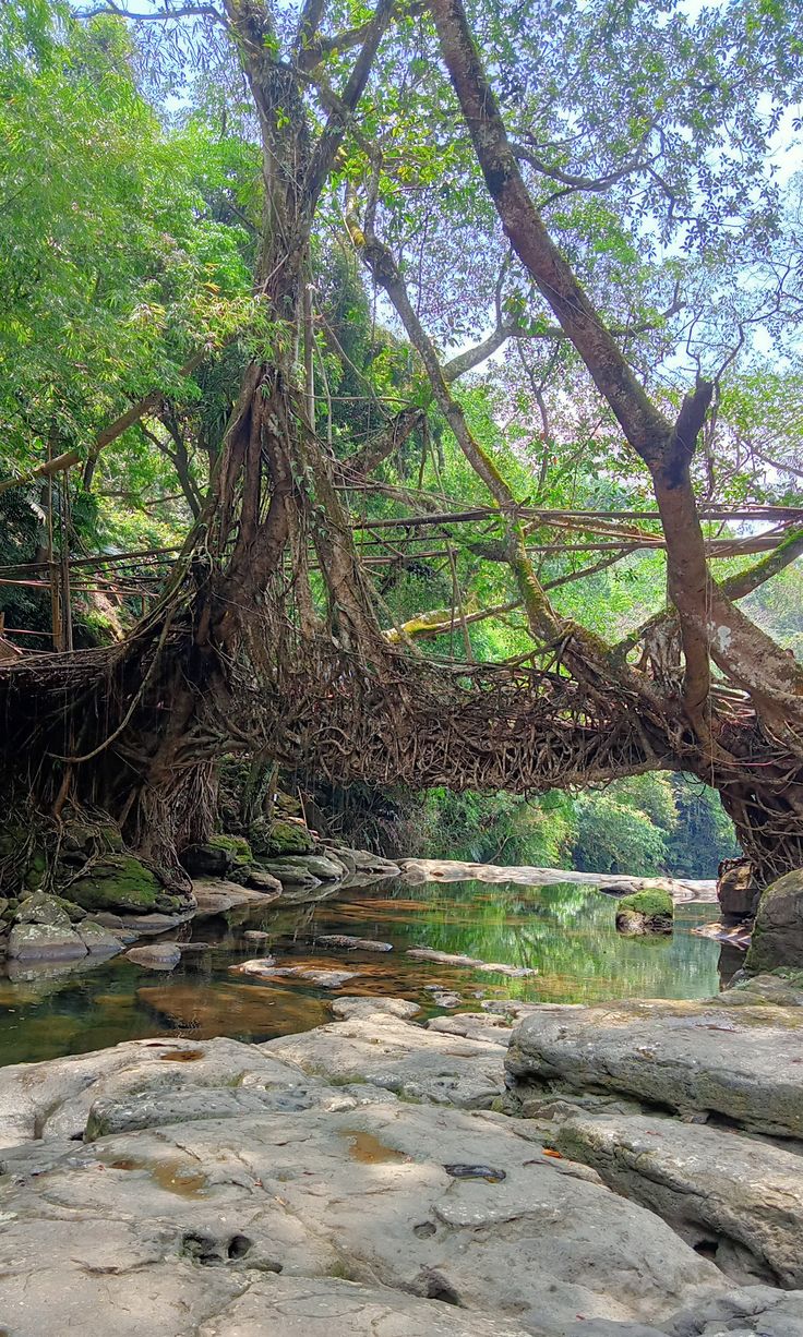 നോർത്ത് ഈസ്റ്റിലെ ഏഴ് സുന്ദരികളിൽ ഒന്നാണ് മേഘാലയ. വൈവിധ്യമാർന്ന സസ്യജന്തുജാലങ്ങൾക്കൊപ്പം, വെള്ളച്ചാട്ടങ്ങൾ, വനങ്ങൾ, പാലങ്ങൾ, വനപാതകൾ, നിറഞ്ഞൊഴുകുന്ന നദികൾ എന്നിവ മേഘാലയയുടെ മനോഹാരിതക്ക് മാറ്റ് കൂട്ടുന്നു. അതിൽ പ്രധാന ആകർഷണങ്ങളിൽ ഒന്നാണ് വേരുകൾ കൊണ്ട് നിർമിച്ച ജീവനുള്ള പാലങ്ങൾ (Living root bridge). മേഘായയിലെ ചിറാപുഞ്ചിയിലും സമീപപ്രദേശങ്ങളിലുമാണ് ഈ വിസ്മയക്കാഴ്ചയുള്ളത്.