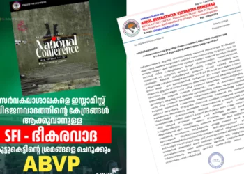 കൊച്ചി: മുനമ്പത്ത് വഖഫ് ബോര്ഡ് നടത്തുന്ന ഭൂമി കൊള്ളയെ ശക്തമായി ചെറുക്കുമെന്ന് ഹിന്ദു ഐക്യവേദി. 610 കുടുംബങ്ങളെ വഴിയാധാരമാക്കുന്ന നടപടികളുമായാണ് വഖഫ് ബോര്ഡ് മുന്നോട്ട് പോകുന്നത്. കഴിഞ്ഞ 35...
