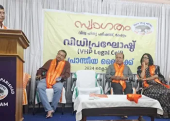 കൊച്ചി: സാമ്പത്തിക ബുദ്ധിമുട്ട് നിമിത്തം ഒരു ഹിന്ദുവിനും ഹൈന്ദവ സ്ഥാപനങ്ങള്ക്കും നിയമപരിരക്ഷ കിട്ടാതെ വരുന്ന സാഹചര്യം ഒഴിവാക്കുമെന്ന് വിശ്വ ഹിന്ദു പരിഷത്ത് ലീഗല് സെല് ദേശീയ ജോയിന്റ് കണ്വീനര്...