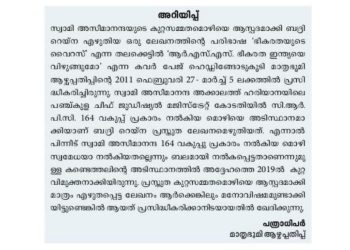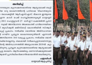 Kozhikode: Mathrubhumi weekly expressed regret for carrying false matters against RSS. Interestingly this step is after losing the legal battle...