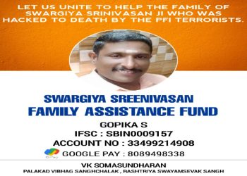 Support the family of Swargeeya Sreenivasan , who was killed by Islamic terrorists