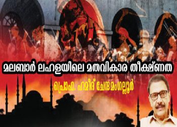 ബ്രിട്ടീഷ് വാഴ്ചയിലിരുന്ന മലബാറിലെ ഏറനാട്, വള്ളുവനാട്, പൊന്നാനി, കോഴിക്കോട് എന്നീ ദക്ഷിണ താലൂക്കുകളിലായി 1921ല് നടന്നതും അഞ്ചുമാസക്കാലത്തോളം നീണ്ടുനിന്നതുമായ ലഹളയെക്കുറിച്ച് ഒട്ടേറെ പഠനങ്ങള് പുറത്തുവന്നിട്ടുണ്ട്. മലയാളികളുള്പ്പെടെയുള്ള ഇന്ത്യക്കാരുടെയും...