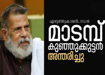 തൃശൂര്: എഴുത്തുകാരനും നടനും തപസ്യ കലാസാഹിത്യ വേദി സംസ്ഥാന അധ്യക്ഷനുമായ മാടമ്പ് കുഞ്ഞുകുട്ടന് (80 വയസ്) (ശങ്കരന് നമ്പൂതിരി) അന്തരിച്ചു. കൊവിഡ് ബാധിതനായി തൃശൂരിലെ സ്വകാര്യ ആശുപത്രിയില്...