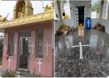 Christian man painted 250 years old Amman temple with Christian Crosses