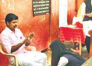 Islamic radicals stir controversy over Gurupurnima celebrations after the picture of a Muslim girl, with headgear, prostrating before her teacher...
