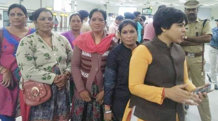 Trupti Desai is blocked by devotees in Kochi airport. She, along with five companions, landed at Kochi International Airport at 4.40am, but she has not succeeded to come out, thanks to the strong protest blockade staged by the devotees. Police try their level best to take her out and lead to Sabarimala. Hindu Aikya Vedi (HAV) president K.P. Sasikala Teacher asks Trupti to go back. But, Desai made it clear that she would go to Shabarimala at any cost. DG of Police says, so far no decisions have been taken regarding the security for Desai.