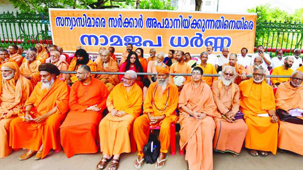 Hindu spiritual leaders staged a namajapa dharna in front of the secretariat in Thiruvananthapuram on April 21 to protest against CPI(M) for insulting Swami Chidanand Puri, head of the Adwaitashramam in Kolathoor, Kozhikode.
