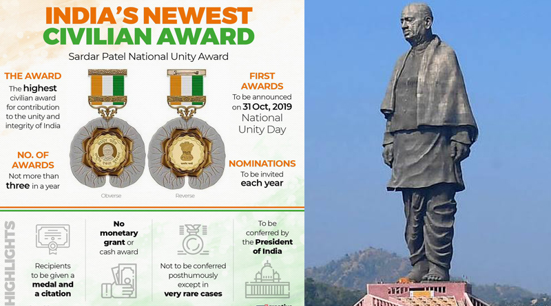 Delhi: The Government of India has instituted the ‘Sardar Patel National Unity Award’ in the name of Sardar Vallabhbhai Patel. The award is the highest civilian award in the field of contribution to the unity and integrity of India. A notification instituting the Award was issued by the Ministry of Home Affairs last week.