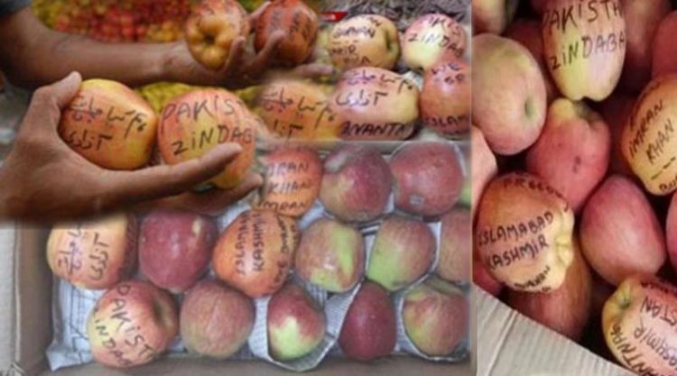 The apples also had messages like ‘Go back India-Go back India’, ‘Mere Jaan Imran Khan’ and ‘Pakistan-Pakistan’.