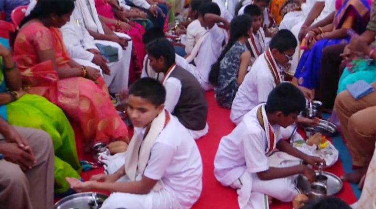 Shivamogga: Around 700 students performed ‘pada pooja’ with their parents ar Anupinakatte in Shivamogga district, Karnataka on Wednesday to celebrate the new year. Students of the Ramakrishna Gurukula Residential School here washed the feet of their parents and applied sandalwood and showered flowers on their feet. Parents were seen cherishing the moment and recording it on their mobile phones. “Every year, we celebrate the new year this way. We perform pada pooja to retain values in the younger generations. I believe that this is more beautiful than going to the clubs,” Charita a student told. Vikas, another student also echoed similar sentiments. “The school is teaching us values which will be useful in our lives. This is our culture and we should preserve it.”