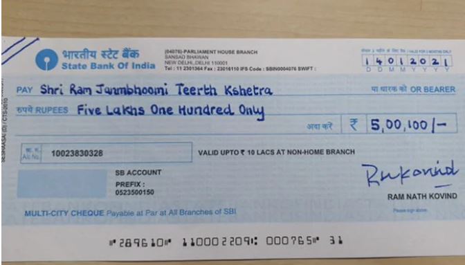 President Ram Nath Kovind made the first contribution towards the reconstruction of the Ram temple in Ayodhya on Friday. The President donated a sum of Rs 5,01,000 to the Ram Janmabhoomi Teerath Kshetra Trust.