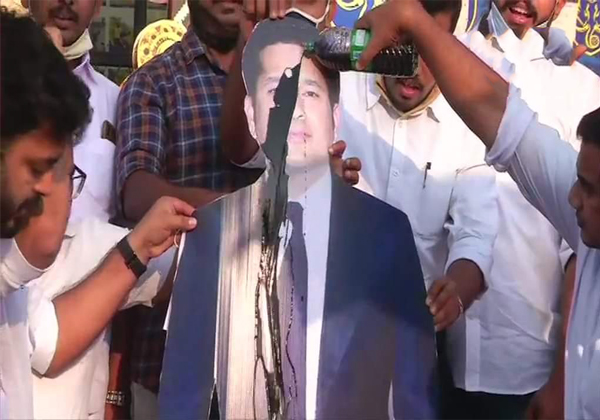 A day after his tweet on international personalities who tweeted on farmers protest, the members of Indian Youth Congress on Friday poured black oil on a cut-out of Sachin Tendulkar in Kochi, Kerala.