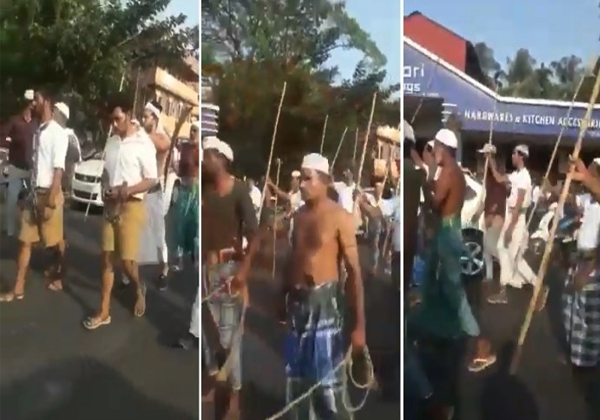 In a shocking rally carried out by the Islamist organization, the Popular Front of India (PFI) in Kerala, people dressed up in RSS uniform were paraded in chains. The audio and visuals from the rally confirm Islamic chantings, including ‘Allahu Akbar’, ‘la ilaha illallah muhammadur rasulullah’, and others. The rally was held in Thenhipalam town in the Malappuram district of Kerala, and the video shows the procession passing through Chelari.