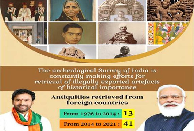 Giving more details later, G Kishan Reddy said “It is a matter of pride that we have been able to retrieve many of our stolen heritage objects from abroad”. The number of antiquities recovered in the last seven years is the highest ever. Since 2014, India has repatriated 41 heritage objects back to India which is more than 75% of the total objects returned.