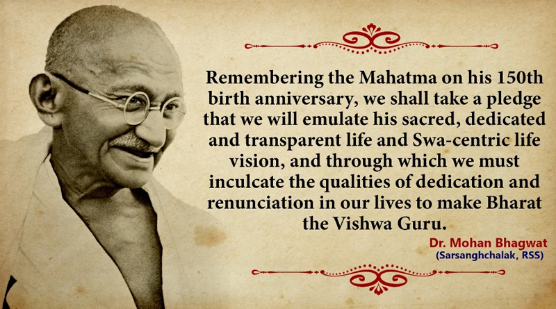 Remembering the Mahatma on his 150th birth anniversary, we shall take a pledge that we will emulate his sacred, dedicated and transparent life and Swa-centric life vision, and through which we must inculcate the qualities of dedication and renunciation in our lives to make Bharat the Vishwa Guru.