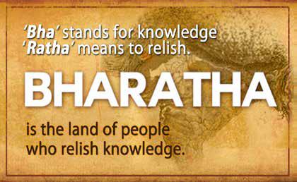 Bharat or Bharati therefore connotes one who is a connoisseur of knowledge, who relishes knowledge, seeks out knowledge.