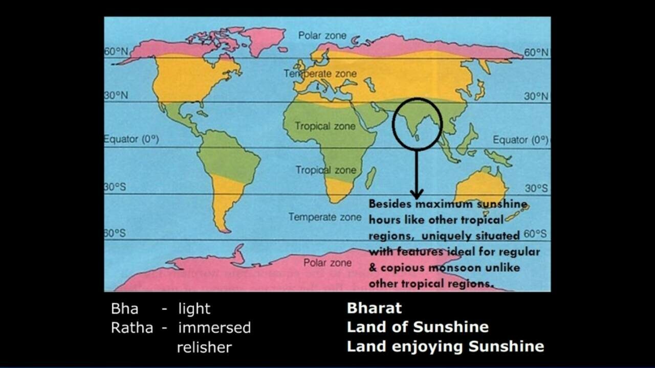 Hence Bharat also denotes that land in the world which enjoys sunlight and the bounty that the Sun has to offer.