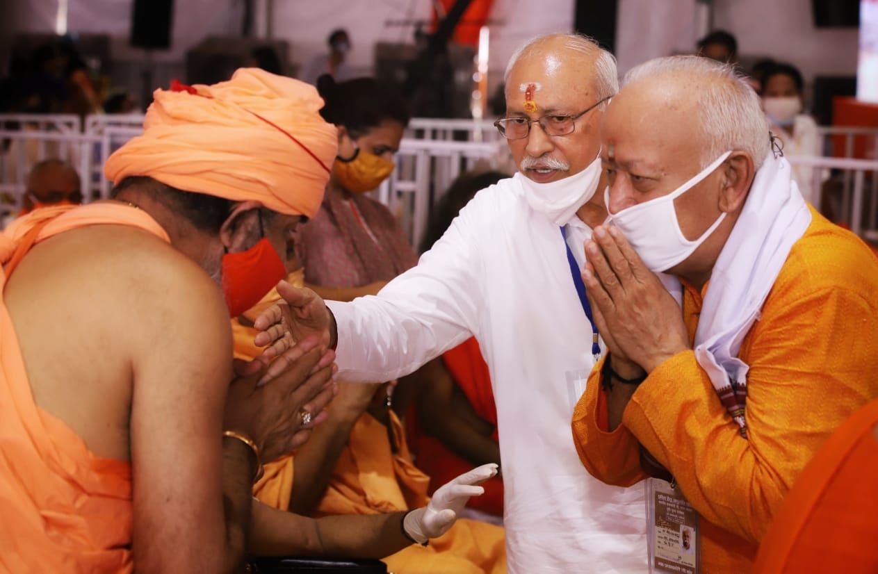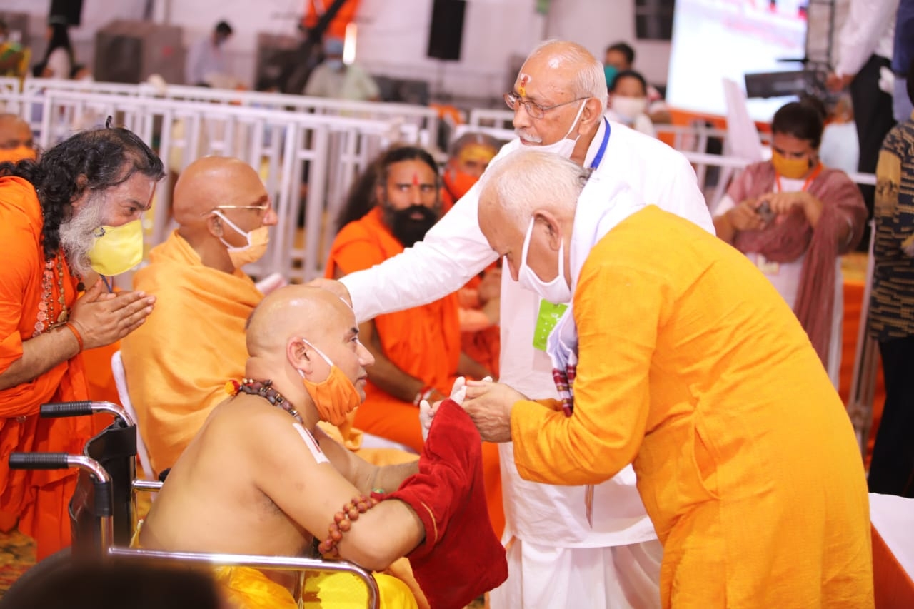 Our hearts should also be the abode of Ram. We must be free of all vices, ill- feelings and animosity and should have the capability of doing all sorts of work, irrespective of the illusions of the real world, whatever they may be. Also, we should rid our hearts of all disparities, as our work is to shape the individual and the society of this nation, which is capable of owning not only her own people but the whole world. Here will come up the living concrete symbol of the work necessary for building up the society. And this symbol will be a perpetual source of symbol for all. The construction of the majestic Ram temple is not merely the construction of yet another temple to add one more to lakhs of temples that already exist, but the auspicious inauguration of the process of the re-manifestation and reestablishment of the spirit behind the installation of deities in all temples. On this auspicious occasion, on this joyful moment I greet you all and, and sharing my thoughts with you for your consideration, I would like to take leave of you.