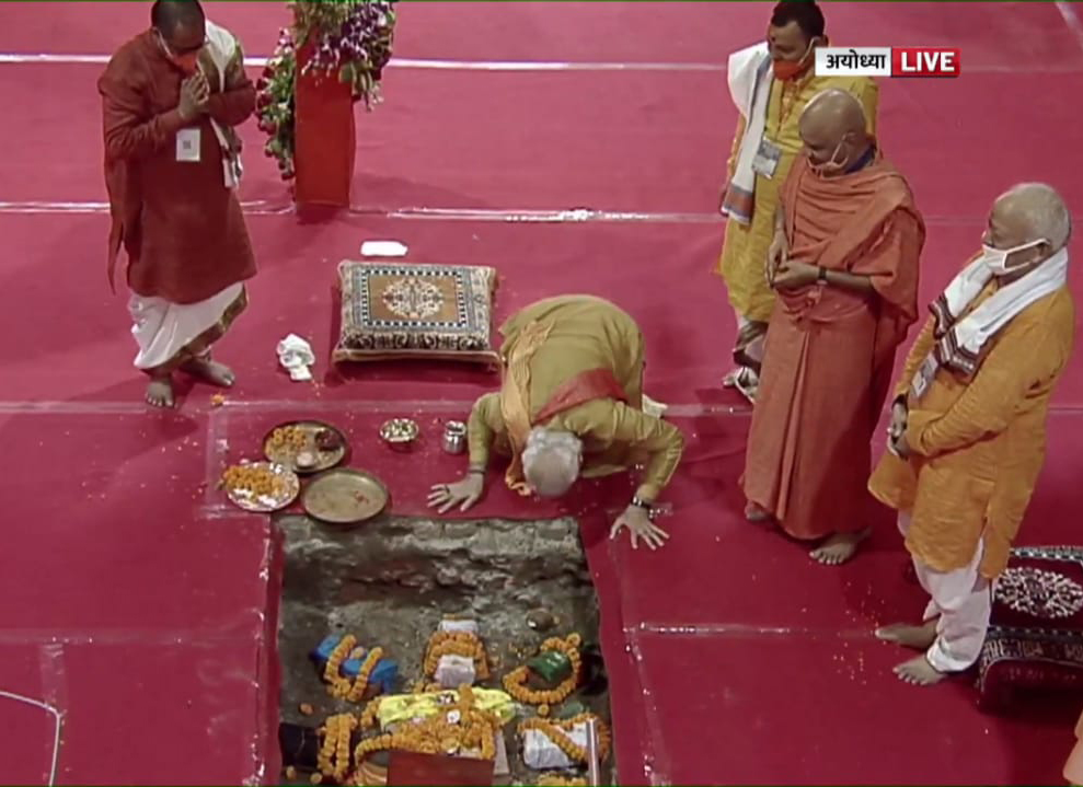 Everyone toiled very hard; and many of them have martyred themselves and they all must be present in their intangible form. There are also those who could not be present here physically because of the situation. Advani ji, who led the Rath Yatra would be watching this programme, sitting in his home. There are many who could have come but couldn’t be invited because of the circumstances. They also, would be watching the programme from where they own places. I am able to see the wave of happiness across the nation. This happiness is the result of fulfilment of a desire that remained unfulfilled for centuries.