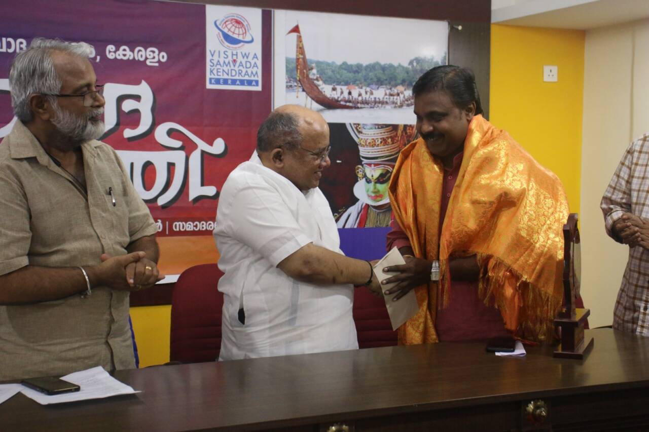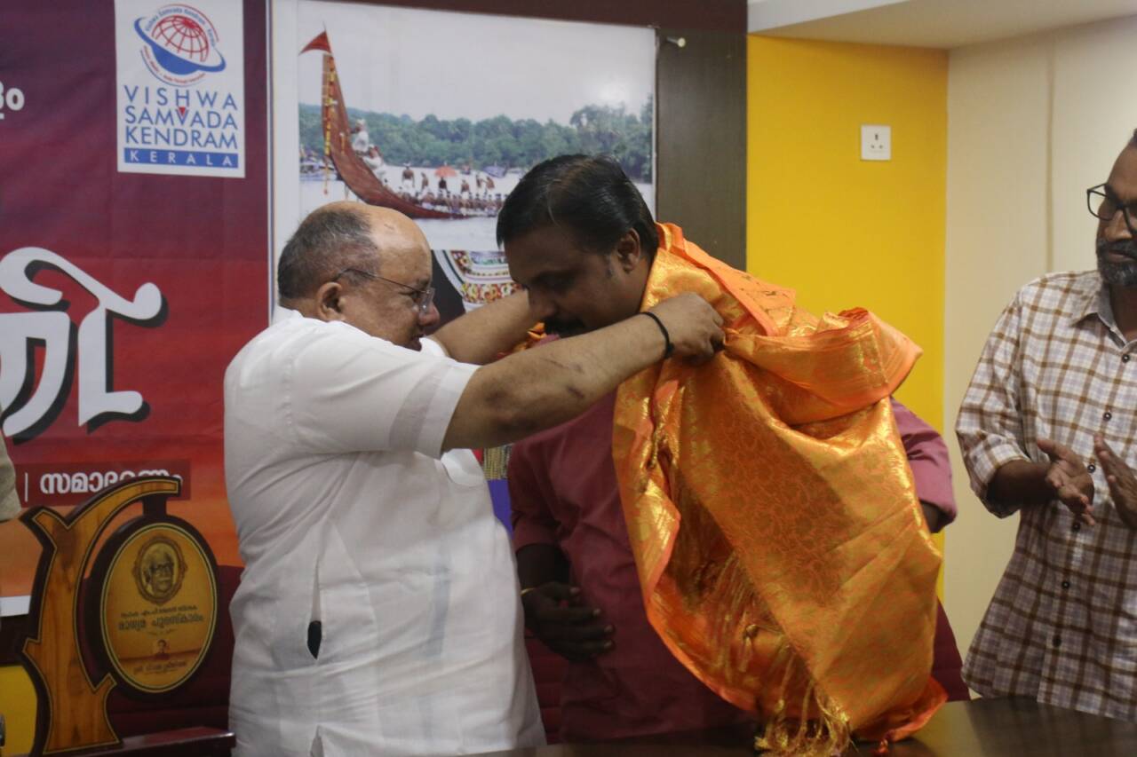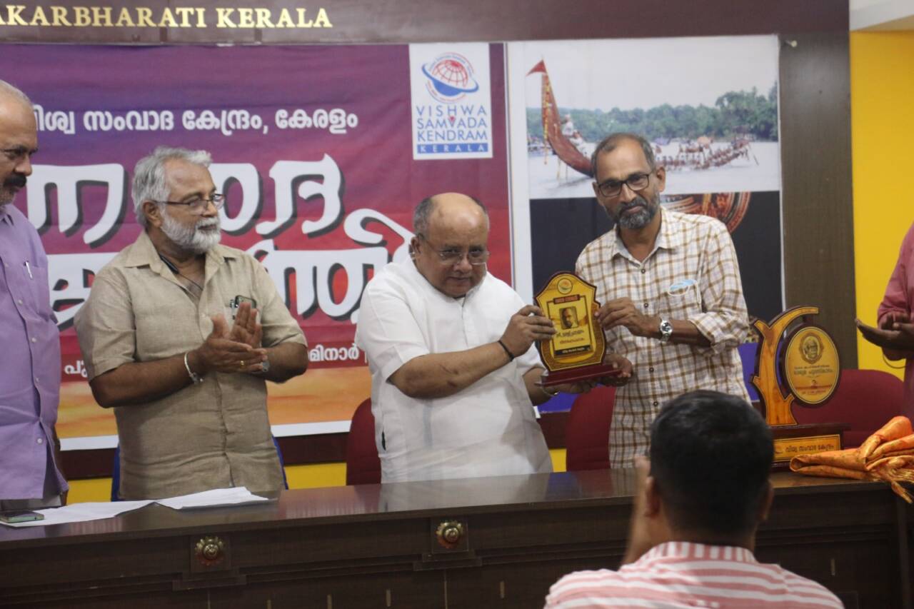 Dr. Sebastian Paul presented the award, for the total contribution towards cultural media activities, to M.V. Benny.