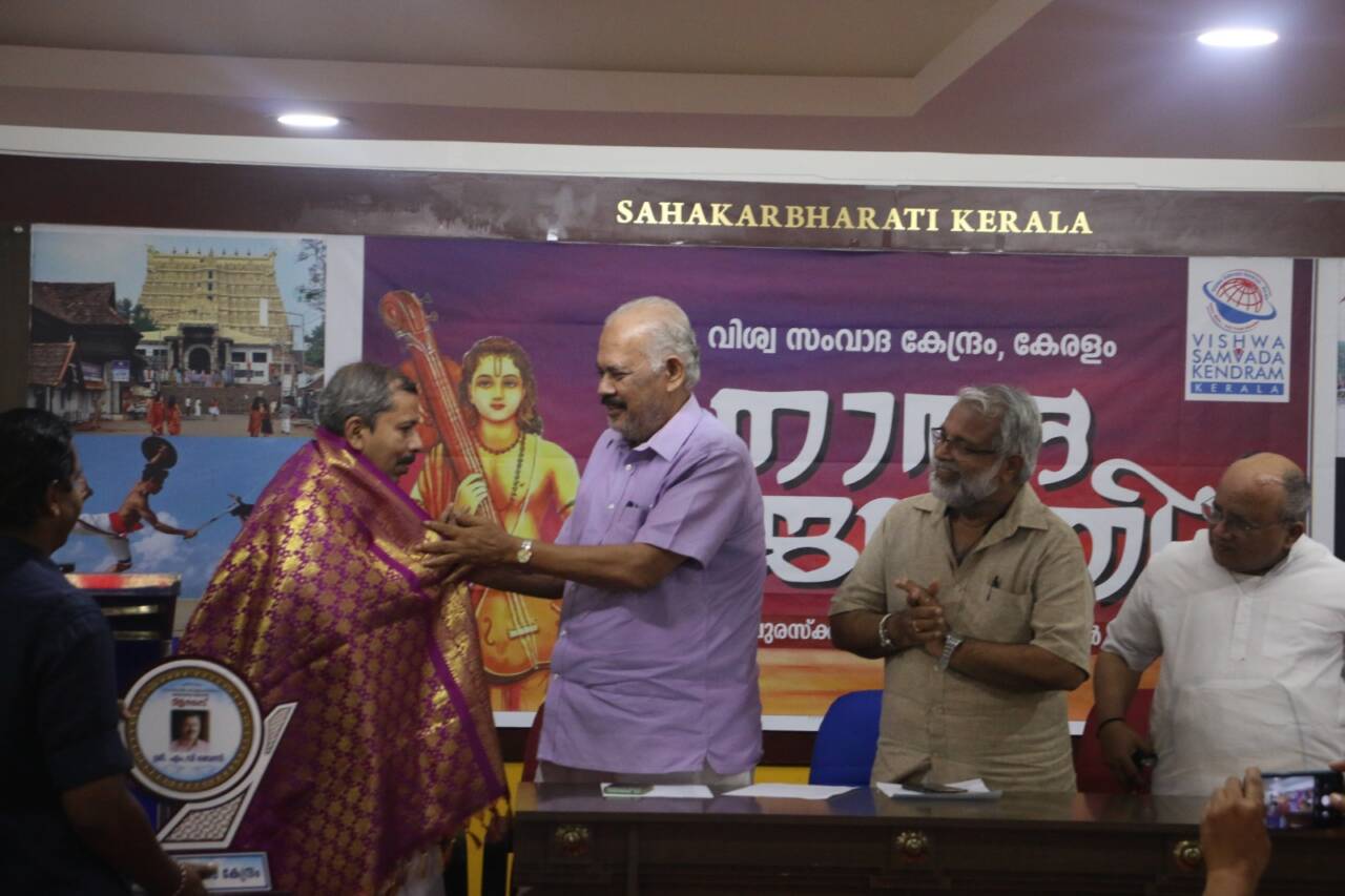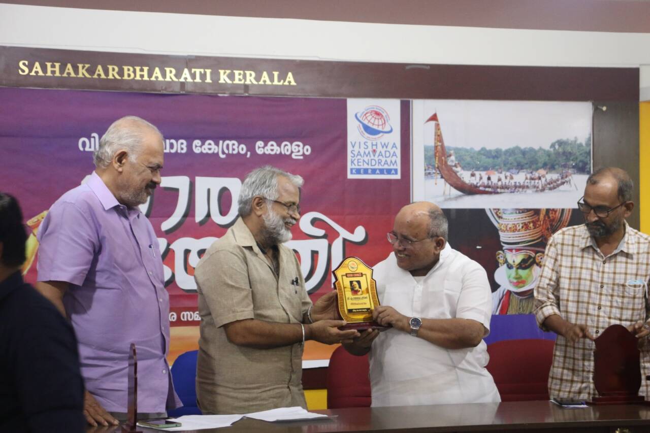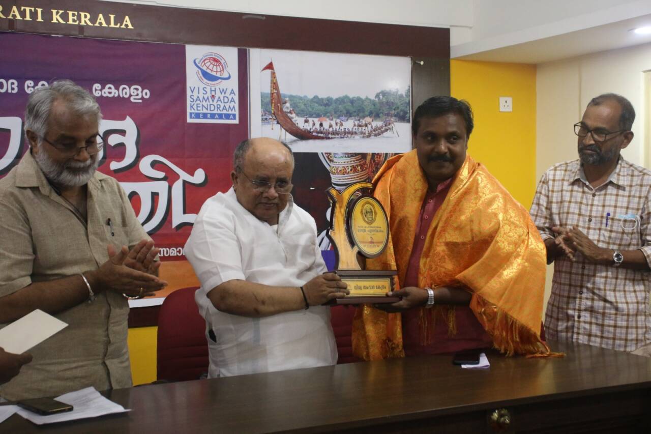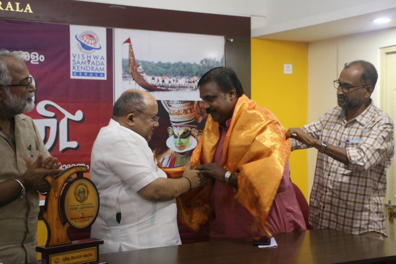 Dr. Sebastian Paul presented the award, for the total contribution towards cultural media activities, to M.V. Benny.