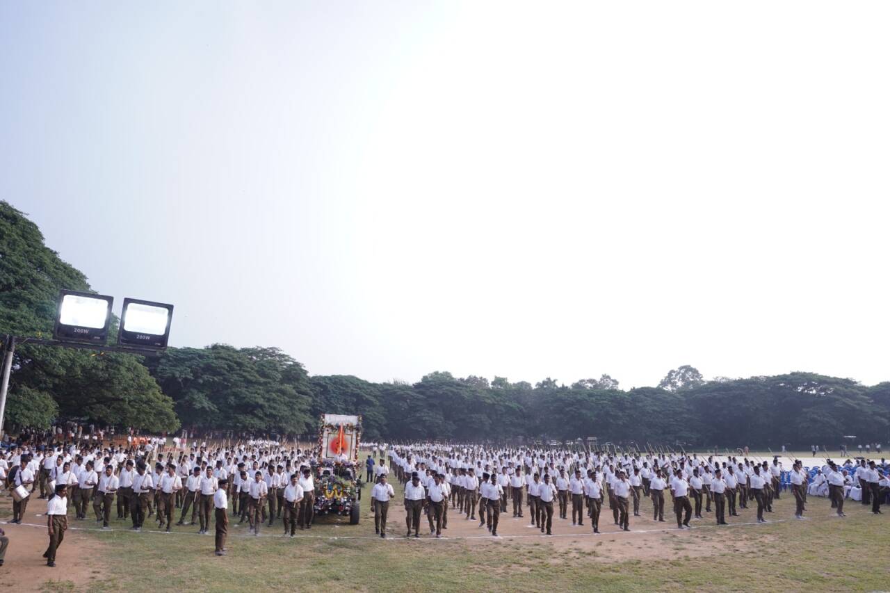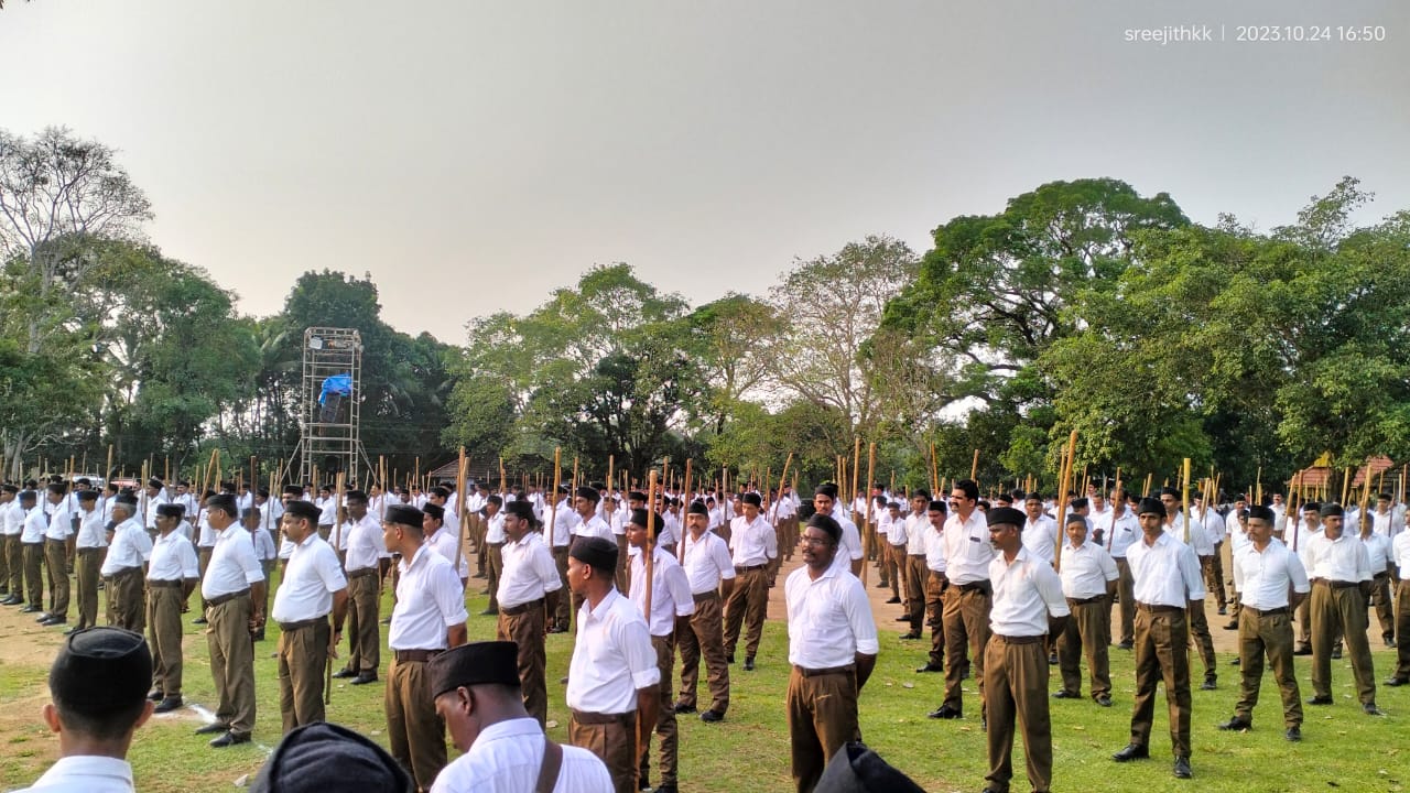 RSS padasanjalans are not something new to Keralites. Every year, swayamsevaks carry out colourful sanjalans in Kerala, in connection with Vijayadashami celebrations, to celebrate the birthday of Sangh. It used to be organizational district-wise. But, when the number of participants increased in geometrical proportions, it was changed to lower organizational units. In some places, it is Mandal-wise and even Ghant-wide (formerly Taluk). This time in most places it was Ghant-wise. Thousands of swayamsevaks participated in various sanjalans and public saghikhs. Senior office-bearers who spoke on the occasions touched almost all national and international issues like border conflicts with China and Pakistan, Kashmir, Ramamandir, G-20, Hamas’s attacks against Israel, the concept of Vasudhaiva Kudumbakam well received by the countries around the world during G-20 Conclave, successful Chandrayan mission, etc. Apart from Ganavesh-clad swayamsevaks thousandss of women, children and sympathisers participated in the programme.