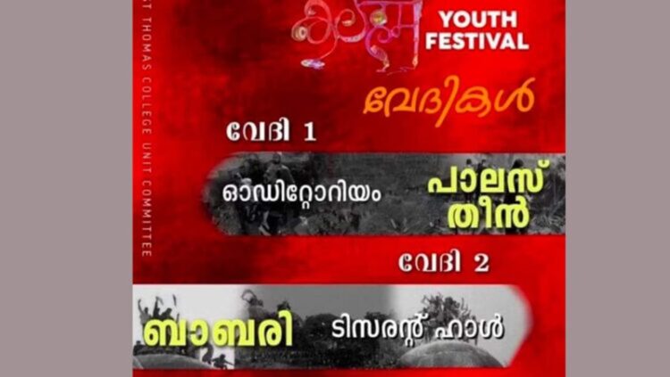 The authorities of St. Thomas College, Pala, Kottayam district, nipped in the bud the SFI efforts to politicise the college youth festival. Despite assignment of names, by the authorities, for various venues, SFI tried to go their own way by naming them. They renamed the venues after Babri, Palestine, Manipur, etc. The idea was to malign Hindutwa organisations, read RSS, read PM Narendra Modiji. But, college authorities’ swift action foiled their sinister moves. Principal Prof. James John condemned the SFI men’s attempt to politicise the youth festival venues and asserted that such actions will not be tolerated at all in college campus.