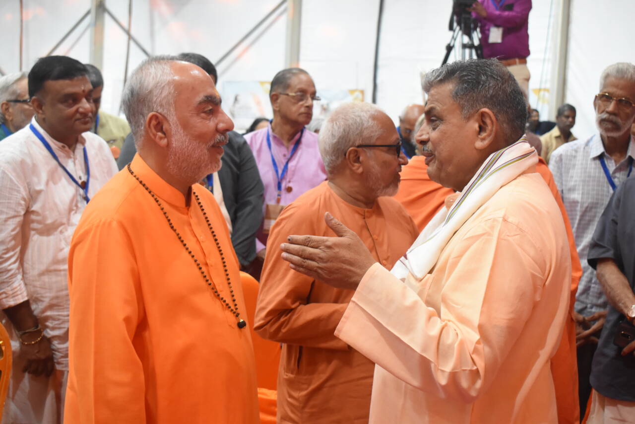 The global head of Chinmaya Mission, Swami Swaroopananda, welcomed the Sarkaryavah.