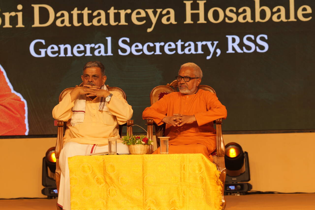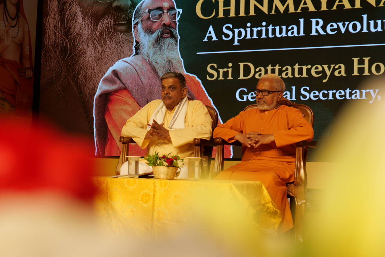 Kochi. RSS Sarkaryavah Dattatreya Hosabale Ji said, Swami Chinmayananda was a revolutionary in the spiritual realm. Swamiji empowered people by sharing knowledge and instilling self-confidence. He aspired to establish a global Hindu organization. He supported the Ram Janmabhoomi movement. He advocated for the creation of a Hindu vote bank. Many ridiculed him. Swamiji’s two great dreams, the Hindu organization and the grand Ram Mandir in Ram Janmabhoomi, were realized through RSS.