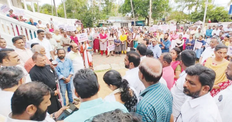 The march, which began from Beach Vanchitappal, concluded at the Velankanni Matha Church courtyard, where parish vicar Antony Xavier addressed the gathering. The closing session was inaugurated by BJP State Vice President Dr. K.S. Radhakrishnan.