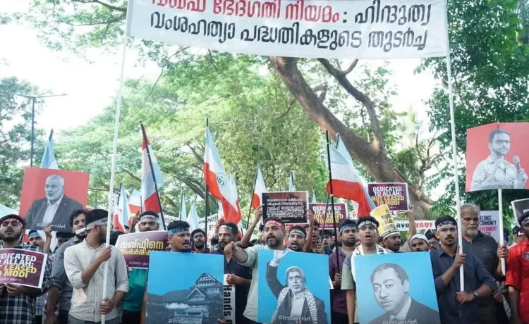 Karipur: A recent protest organized by Solidarity, the political wing of Jamaat-e-Islami, under the banner of opposing the Wakf Board amendment, has sparked controversy for prominently displaying images of individuals associated with extremist ideologies. The protest march and road blockade near Karipur Airport in Malappuram featured banners with photographs of controversial Islamist figures, raising serious concerns about the nature and intent of the demonstration.