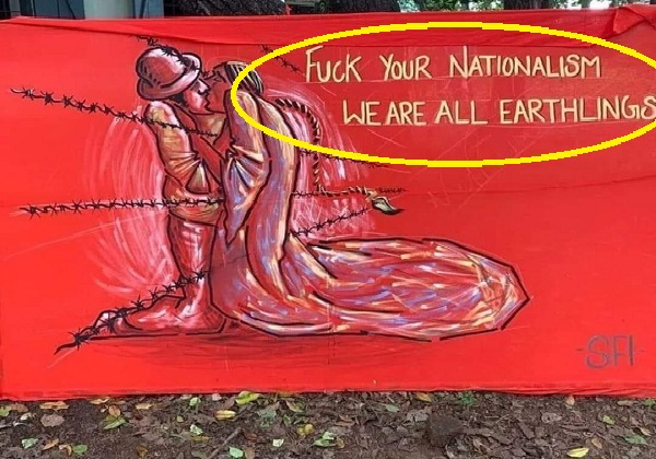 In yet another incident that exposes the anti-national attitude of the communists, a poster by the Students Federation of India (students wing of CPM) placed inside the campus of Kerala Varma College in Thrissur district read, ‘F**k your nationalism’. SFI has also put posters with obscene paintings propagating the idea of sexual anarchy. One such sign reads, ‘the planet needs sexual liberation’. There had been multiple incidents in the past where SFI promoted sexual anarchy on the campuses.