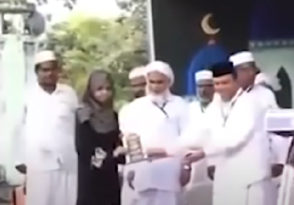 As a part of the opening ceremony of a madrasa building, students were felicitated by the SKJU members. Awards were presented to boys, however, when a 10th standard student entered the stage, the leader objected.  Soon after she receives the award, the leader reprimands the members for inviting “a girl on stage”.