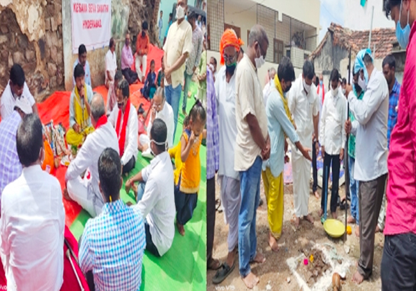 VSK Telangana: Sevabharati Telangana has extended a helping hand to displaced Hindu families whose houses were burnt down and displaced by a Islamist mob at Bhainsa town of Adilabad district of Telangana in January 2020. In order to support these families, Sevabharati held a Bhoomi Puja on 24th August to construct the new houses for the displaced families. This event was attended by RSS Pranth Pracharak Shri Devender ji, Shri Durgareddy of Sevabharati, various social and voluntary organizations and swayamsevaks.