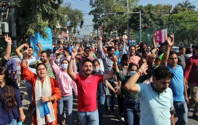 ബജ്രംഗ് ദള് പ്രവര്ത്തകനും പ്രതിഷേധക്കാര്ക്കൊപ്പം ചേരുകയും താഴ്വരയില് ഭീകരര് നിരന്തരം ലക്ഷ്യമിടുന്ന കൊലപാതകങ്ങളെ അപലപിച്ച് പാകിസ്ഥാന്റെ കോലം കത്തിക്കുകയും ചെയ്തു.