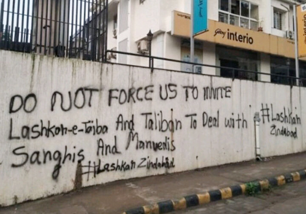 മംഗളൂരുവിലെ കോടതി പരിസരത്തെ പഴയ പോലീസ് ഔട്ട്പോസ്റ്റിന് പുറത്താണ് ചുവരെഴുത്തുകൾ കണ്ടെത്തിയത് . മുംബൈ ഭീകരാക്രമണത്തിന്റെ വാർഷിക ദിനാചാരണത്തിനോടനുബന്ധിച്ചാണ് പാക് ഭീകരസംഘടനയായ ലഷ്കർ ഇ ത്വയ്ബയ്ക്ക് സിന്ദാബാദ് വിളിച്ച് മംഗളൂരുവിൽ പോസ്റ്ററുകളും ,ചുവരെഴുത്തുകളും പ്രത്യക്ഷപ്പെട്ടത് . ഒപ്പം “സംഘികളോടും മനുവാദികളോടും ഇടപെടുവാൻ ലഷ്കർ-ഇ-ത്വയിബയെയും താലിബാനെയും ക്ഷണിക്കാൻ ഞങ്ങളെ നിർബന്ധിക്കരുത്” എന്ന വാക്യത്തിനൊപ്പം “ലഷ്കർ സിന്ദാബാദ്” എന്ന ഹാഷ്ടാഗും വരച്ചിരുന്നു .