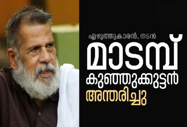 തൃശൂര്: എഴുത്തുകാരനും നടനും തപസ്യ കലാസാഹിത്യ വേദി സംസ്ഥാന അധ്യക്ഷനുമായ മാടമ്പ് കുഞ്ഞുകുട്ടന് (80 വയസ്) (ശങ്കരന് നമ്പൂതിരി) അന്തരിച്ചു. കൊവിഡ് ബാധിതനായി തൃശൂരിലെ സ്വകാര്യ ആശുപത്രിയില് ചികിത്സയിലായിരുന്നു. കരള് സംബന്ധമായ അസുഖത്തെ തുടര്ന്ന് ഒരാഴ്ച മുന്പ് ചികിത്സ തേടിയിരുന്നു.