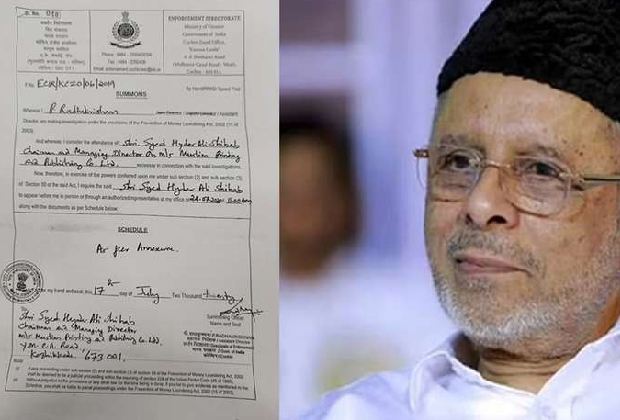 2020 ജൂലൈ 24 ന് എൻഫോഴ്സ് മെൻരിനുമുന്നിൽ ഹാജരാകണമെന്ന് നോട്ടീസ് നൽകി. മുസ്ലീം പ്രിന്റിംഗ് ആന്റ് പ്ബ്ലംഷിംഗ് ലിമിറ്റഡിന്റെ ചെയർമാൻ ആന്റ് മാനേജിംഗ് ഡയറക്ടർ എന്ന നിലിയിലാണ് തങ്ങളെ ചോദ്യം ചെയ്തത്.