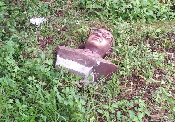 തകര്‍ത്തെറിഞ്ഞുകളഞ്ഞ ഡോ.ബി.ആര്‍ അംബേദ്കറുടെ പ്രതിമയുടെ തലഭാഗം