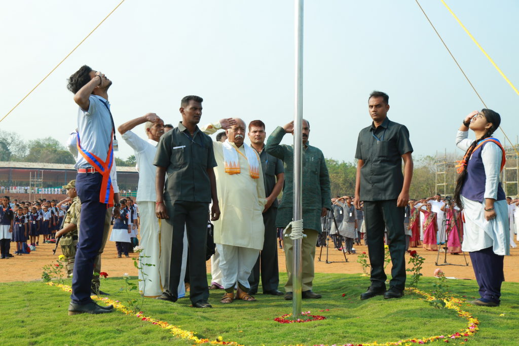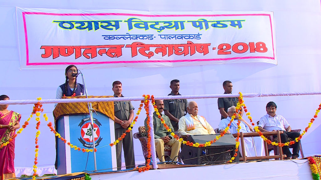 ചടങ്ങില് പ്രധാനാധ്യാപകന് ജി ദേവന് അദ്ധ്യക്ഷത വഹിച്ചു. ആര്.എസ്.എസ് മുന് അഖില ഭാരതീയ ബൗദ്ധിക് പ്രമുഖ് ആര്. ഹരി സംബന്ധിച്ചു. കൃഷ്ണാഞ്ജന സ്വാഗതവും, മീര നന്ദിയും പറഞ്ഞു. സ്കൂള് വിദ്യാര്ത്ഥികളും രക്ഷിതാക്കളും ചടങ്ങില് പങ്കെടുത്തു. വിദ്യാലയത്തില് നടക്കുന്ന നടക്കുന്ന ത്രിദിന ആര്.എസ്.എസ്. പ്രാന്തീയ കാര്യകര്തൃ ശിബിരത്തിലെ ഏഴായിരത്തോളം പ്രതിനിധികളും റിപ്പബ്ലിക്ക് ദിനാഘോഷത്തില് പങ്കെടുത്തു.