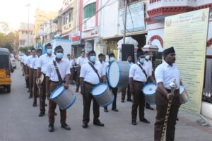 ചെന്നൈ: ദേശഭക്ത മഹാകവി സുബ്രഹ്മണ്യ ഭാരതിയാരുടെ ജന്മദിനത്തില് ഭാവാത്മക അര്ച്ചനയുമായി ആര്എസ്എസ് പ്രവര്ത്തകര്. കവിഭാരതി എന്ന പേരില് പുതിയ ഘോഷ് രചനയ്ക്ക് രൂപം നല്കിയാണ് മഹാകവിക്ക് സ്മരണാഞ്ജലി ഒരുക്കിയത്. തിരുവല്ലിക്കേണിയിലെ ഭാരതി ഹൗസിന് മുന്നില് മഹാകവിയുടെ ‘ഒളി പടൈത കന്നിനൈ വാ വാ വാ’ എന്ന ഗീതം ഓടക്കുഴലില് ഘോഷുപകരണങ്ങളുടെ പിന്നണിയോടെ പ്രവര്ത്തകര് ആലപിച്ചു.