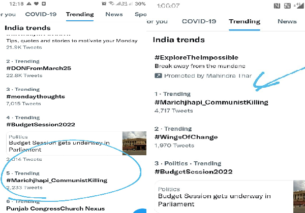 സിപിഎം ക്രൂരത ചര്‍ച്ച ചെയ്ത് രാജ്യംട്വിറ്റര്‍ ട്രെന്‍ഡിങ്ങില്‍ ഒന്നാമതായി മാരിച്ഝാപി