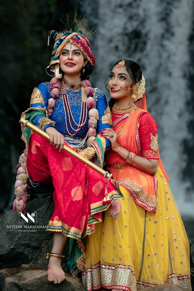 ”കൃഷ്ണനായും മുരുകനായും ഗണപതിയായും ഞാന് വേഷമിട്ടിട്ടുണ്ട്. ശരീരം വളരുന്നതിനനുസരിച്ച് ആ സമയത്ത് നമുക്ക് ഏത് വേഷമാണോ കെട്ടാന് പറ്റുന്നത് അത് ചെയ്യാറുണ്ട്. ഇത്തവണ ചേട്ടന്റെ കുഞ്ഞ് കൃഷ്ണനായി എത്തി. ആദ്യമായാണ് അവന് കൃഷ്ണനായി ഒരുങ്ങുന്നത്. ഇത്തവണ അവനാണ് ഞങ്ങളുടെ താരം.