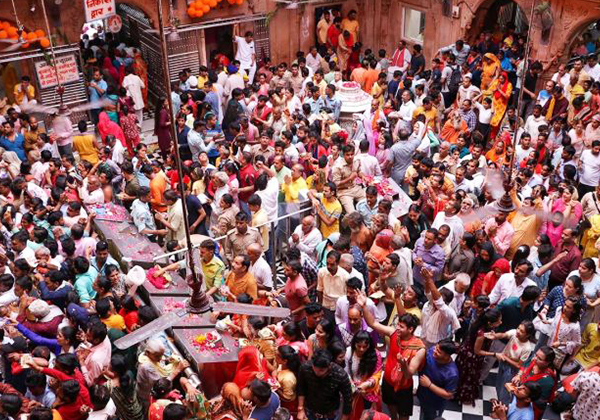 വൃന്ദാവനിലെ ശ്രീബാങ്കിബിഹാരി ക്ഷേത്രത്തിലെ ഭക്തജനത്തിരക്ക്