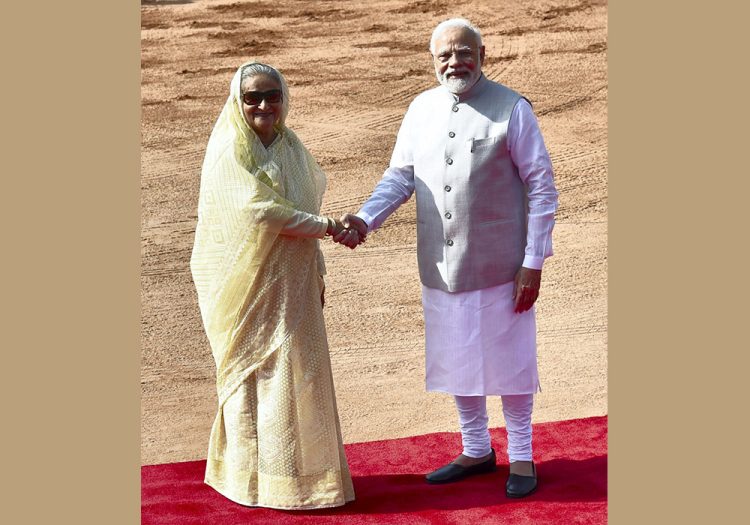 ന്യൂദല്ഹി: രാഷ്ട്രപതി ഭവന്റെ അങ്കണത്തില് ബംഗ്ലദേശ് പ്രധാനമന്ത്രി ഷേഖ് ഹസീനയക്ക് ഊഷ്മള സ്വീകരണം. പ്രധാനമന്ത്രി നരേന്ദ്ര മോദി അവരെ സ്വീകരിച്ചു, രാഷ്ട്രപതി ഭവനില് മാധ്യമ പ്രവര്ത്തകരോട് സംവദിച്ച ഹസീന, മോദിയുമായുള്ള തന്റെ ചര്ച്ചകള് ഇരു രാജ്യങ്ങളിലെ ജനങ്ങളുടെ അവസ്ഥ മെച്ചപ്പെടുത്തുന്നതിനും ദാരിദ്ര്യ ലഘൂകരണത്തിനും സാമ്പത്തിക വികസനത്തിനും ഊന്നല് നല്കുമെന്ന് പറഞ്ഞു.