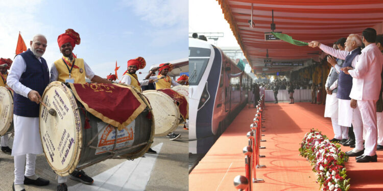 മുംബൈ : രാജ്യത്തെ ആറാമത്തെ വന്ദേഭാരത് എക്സ്പ്രസ് ട്രെയിൻ ഫ്ലാഗ് ഓഫ് ചെയ്ത് പ്രധാനമന്ത്രി നരേന്ദ്ര മോദി. മഹാരാഷ്ട്രയിലെ നാഗ്പൂരിൽ നിന്ന് ഛത്തീസ്ഗഡിലെ ബിലാസ്പൂർ വരെ സഞ്ചാരപാതയുള്ള വന്ദേ ഭാരത് ട്രെയിനിനാണ് അദ്ദേഹം തുടക്കം കുറിച്ചത്. വിവിധ വികസന പദ്ധതികളുടെ ഉദ്ഘാടനത്തിനായി നാഗ്പൂരിലെത്തിയ പ്രധാനമന്ത്രിയെ കേന്ദ്ര മന്ത്രി നിതിൻ ഗഡ്ക്കരി, ഗവർണർ ഭഗത് സിംഗ് കോശ്യാരി, മുഖ്യമന്ത്രി ഏക്നാഥ് ഷിൻഡെ, ഉപമുഖ്യമന്ത്രി ദേവേന്ദ്ര ഫഡ്നാവിസ് എന്നിവർ ചേർന്നാണ് സ്വീകരിച്ചത്.